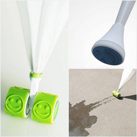 ◆ '땅바닥에 도장 찍는' 우산 =대만 디자이너 유팅챙, 유춘챙, 쇼우챈은 '바퀴'와 '도장'을 이용해 어린이용 도장 우산을 만들었다. 비가 갠 후 움푹 패인 웅덩이에 우산꼭지가 닿으면 바닥에 선이 그어지기 마련인데, 이를 활용해 웃는 모양의 도장을 우산꼭지에 부착했다. 이 우산을 쓰는 사람이 많아지면, 비가 갠 날 바닥에 온통 스마일 도장이 찍힐지도 모른다.