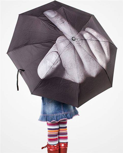 ◆ '하늘에 야유 보내는' 우산 =비오는 날이 끔찍히 싫다면 하늘을 욕해보는 건 어떨까? 아트 레베데브 스튜디오가 디자인한 이 우산은 '하늘에서 우산을 바라본다면?'이라는 발상에 착안했다. 서양에서 상대방을 욕하며 가운데 손가락을 드는데 착안한 이 우산은 전면에 커다란 손이 그려져 있다.
