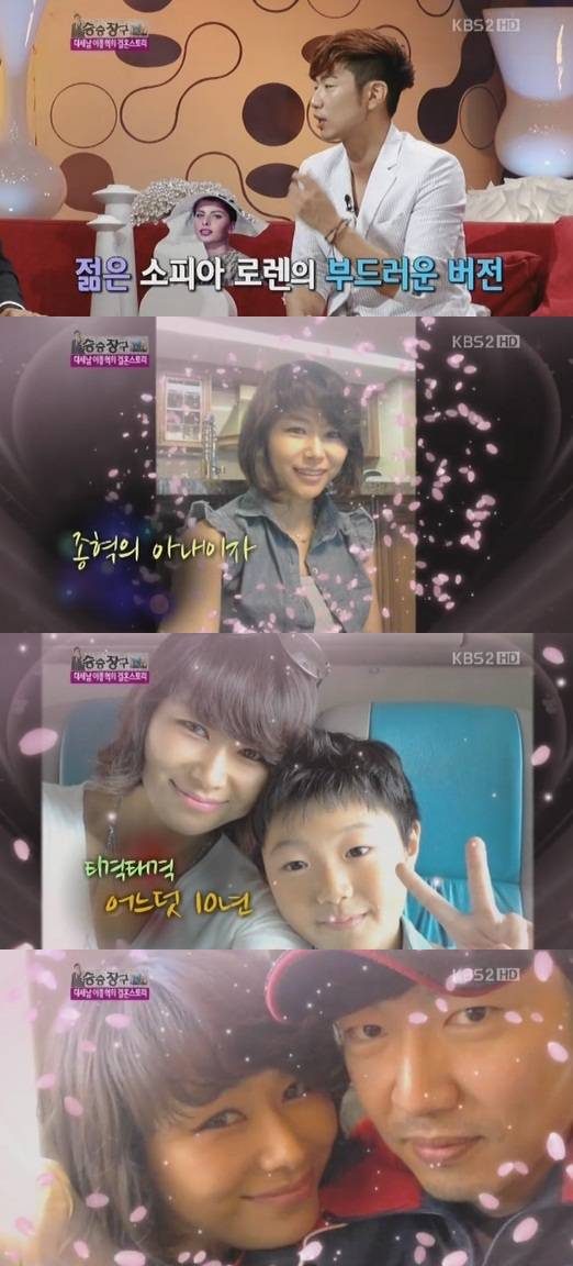 이에 이종혁과 함께 야구단 활동을 하고 있는 김승우는 "이종혁 아내를 봤는데 너무 예뻤다"고 증언했다. 이종혁도 "정말 예쁘다. 소피아로렌보다 부드러운 이미지다"고 설명했다. 이때 공개된 이종혁 아내의 사진과 아들 사진이 공개돼 시선을 사로잡았다. (사진=KBS 2TV '승승장구' 캡처)