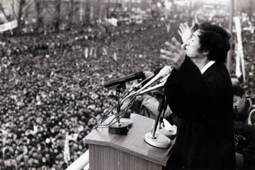 1987년 12월, 민중후보 백기완, 대학로 연설사진(*이날 민중후보 연설엔 시민 30만명이 모였다)