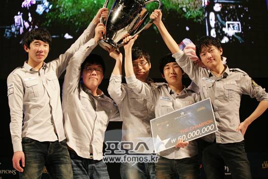 아주부 프로스트가 8일, 용산 전쟁기념관 평화의 광장에서 진행되는 아주부 LOL 더 챔피언스 서머 2012 결승전에서 CLG.EU를 꺾고 최고의 자리에 올랐다.