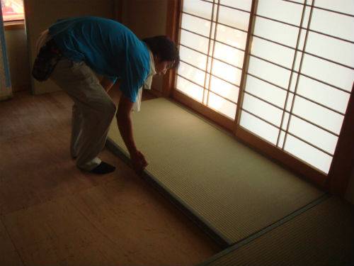 다다미는 골풀이라고 하는 풀을 말려서 엮은 돗자리입니다. 그래서 물걸레로 닦을 수 없습니다. 다다미가 더러워지면 일본 술인 정종에 걸레를 빨아서 닦아줍니다. 그러면 술에 든 알코올 성분으로 다다미에 벌레가 끼지 않을 뿐더러 다다미 냄새도 없앨 수 있습니다.