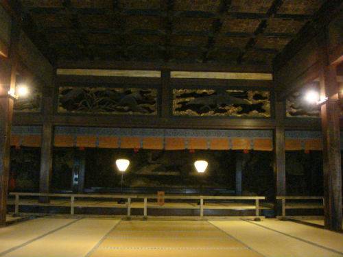 | ▲ 교토 니시혼간지(西本願寺) 뒤에 있는 쇼인(書院)의 다다미방입니다. 다다미의 배치가 가정집 다다미방과 조금 다릅니다. 맨 앞쪽 높은 곳은 주지 스님이 앉는 곳이라고 합니다. |