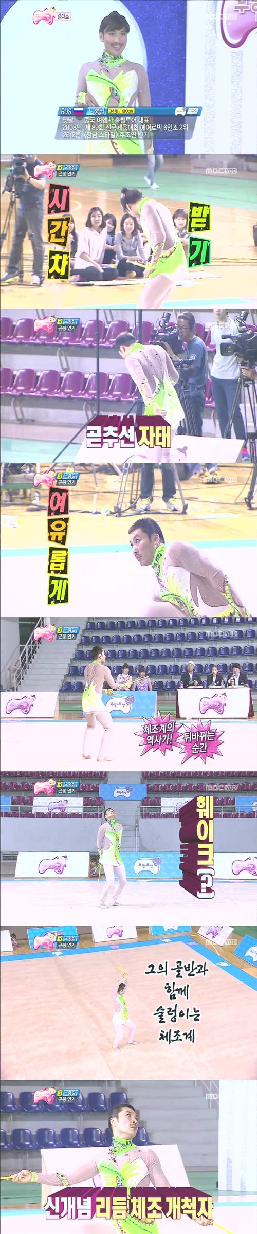 '무한도전'의 노홍철이 리듬체조 선수 손연재가 심사한 갈라쇼에서 만점을 받았다.