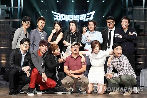 (서울=연합뉴스) 29일 정규물로 첫선을 보이는 '코미디 빅리그' 출연진이 25일 오후 상암동 CJ E & M센터에서 열린 현장공개에서 사진포즈를 취하고 있다. '코미디 빅리그'는 작년 9월 시즌 1으로 출발한 후 지난 8월 시즌 3까지 방송됐다. 2012.9.25 < < CJ E & M > >