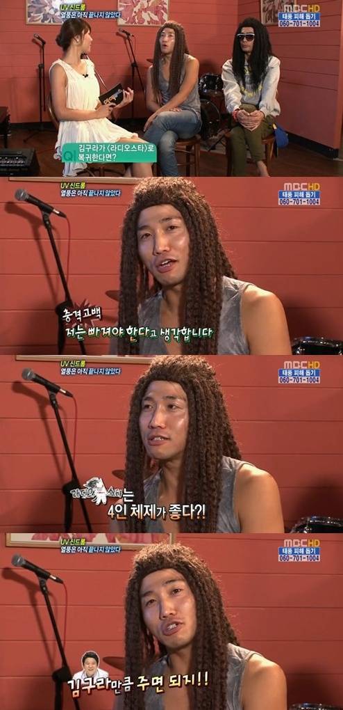 한편 UV는 최근 신곡 '그 여자랑 살래요'를 발표했다. 특히 UV의 뮤직비디오에는 윤도현이 출연해 친분을 과시했다. (사진출처: MBC '기분좋은날' 방송켑처)