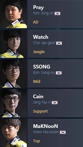 AP 캐리를 맡고 있는 '쏭' 김상수도 실력이 급성장하고 있다. CLG.EU와의 4강전에서는 무기력하게 패배하는 모습을 보이기도 했지만 이후 확 달라진 모습을 선보이며 김종인과 함께 팀을 이끌고 있다. 미드 라인에서 자유자재로 솔로 킬을 기록하는 것은 물론 로밍을 통해 킬 찬스를 만들어 내기도 한다.