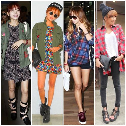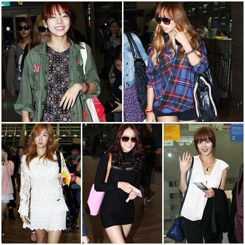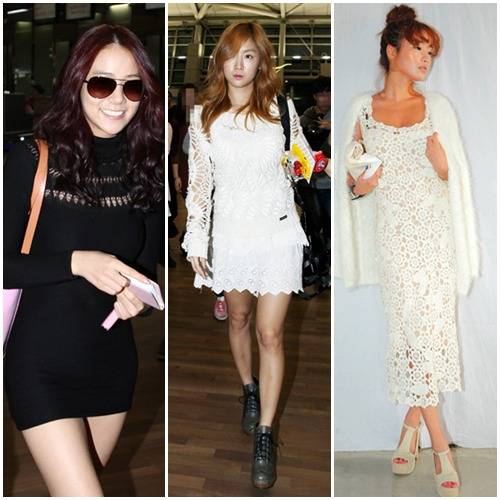 카라의 한승연은 블랙 슬림 미니원피스로 여성미를 강조한 공항패션을 선보였다. 특히 어깨, 가슴 부분이 컷아웃된 디자인을 선택, 은근한 섹시미를 드러냈다. 또한 씨스타의 소유는 전체가 레이스로 된 화이트 원피스를 입어 귀여우면서 청순한 패션을 완성했다. 여기에 워커를 착용, 믹스매치 패션 센스를 드러냈다.