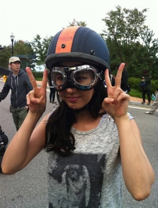 공개된 사진 속 한채아는 오토바이 헬멧을 쓰고 있다. 그 모습이 어린이의 대통령이라 불리는 만화 캐릭터 뽀로로와 매우 닮은 모습이어서 눈길을 끌고 있다.
