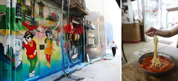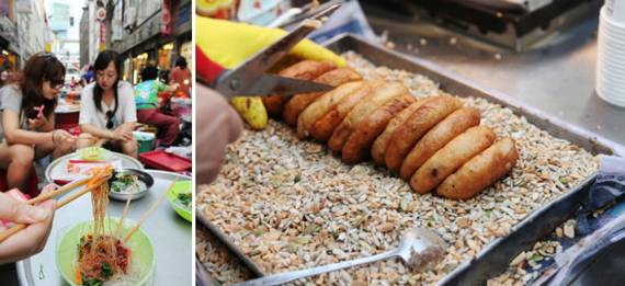 흔히 국제시장을 이야기할 때 빼놓을 수 없는 것이 먹자골목이다. 국제시장이 생기면서 아리랑거리를 중심으로 자연스럽게 형성된 먹자골목은 과거 노점에서 시작되었는데, 지금도 비빔당면 골목(충무김밥을 함께 판다)과 팥빙수 골목, 떡볶이 골목 등에서는 좌판을 놓고 길거리 음식을 판다. 예능 프로그램 〈1박 2일〉에서도 소개한 이곳의 비빔당면과 충무김밥, BIFF 거리의 씨앗호떡은 가장 인기 있는 메뉴로 손꼽힌다.