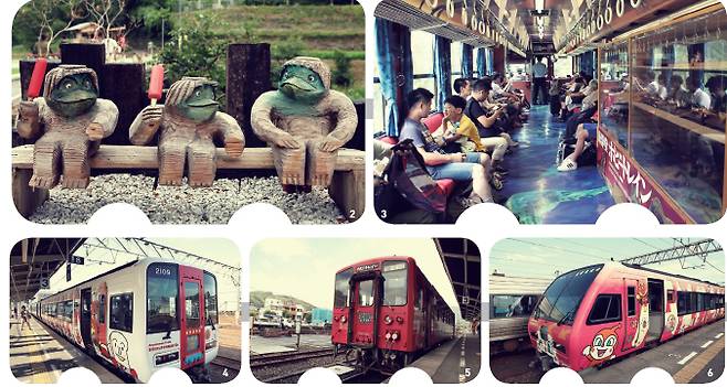 2 개구리와 원숭이를 합쳐 놓은 듯한 상상의 동물 갓파를 다양한 조각과 캐릭터로 전시해둔 갓파관 3 기차 안 한켠에 공룡과 다양한 캐릭터의 피규어들을 전시해둔 카이요도 하비 트레인 4, 6 열차의 외관과 내부가 호빵맨과 그 친구들로 그려진 호빵맨 열차 5 지난해 7월 카이요도 하비관의 개장과 함께 1년간 운행하기로 했던 카이요도 하비 트레인은 지역 주민들의 호응이 좋아 1년 더 연장 운행 중에 있다