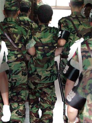 지난 2005년 8월17일 김동민 일병이 경기도 용인 제3군 보통군사법원에서 첫 공판을 받기 위해 법정으로 들어서고 있다. ⓒ 연합뉴스 |