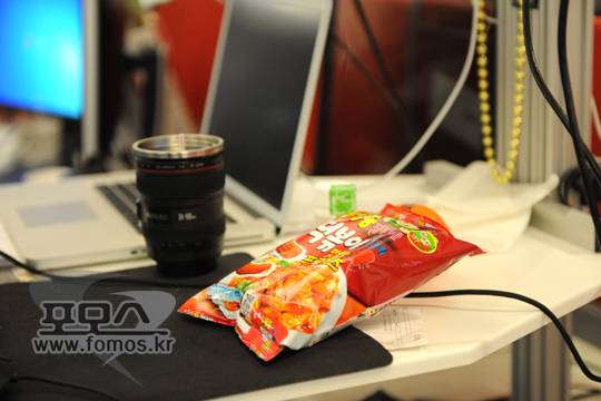 어떤 분의 책상 위에는 아까의 한국 자판기에서 뽑은 듯한 과자가 놓여져 있군요. 라이엇 게임즈 직원들도 한국의 매운맛을 좋아하나봅니다.