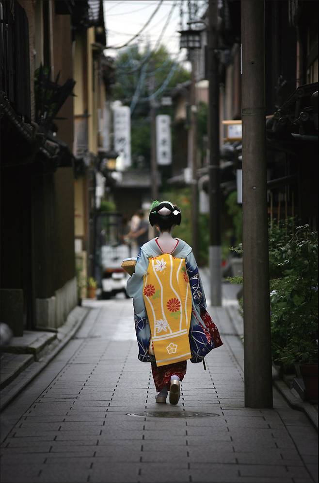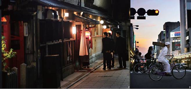 1 늦은 오후에 하나마치에 가야 게이샤를 마주칠 확률이 높다. 오차야로 출근(?)하고 있는 게이코(우)와 마이코(좌) 2 오차야를 찾은 손님들. 워낙 비용이 많이 들기에 오차야의 고객이 되는 건 사회적으로 출세했다는 증표가 되기도 한단다 3 과거와 현재가 공존하는 교토 사람들의 삶을 보면 모든 세상이 꼭 스마트할 필요는 없는 것 같다