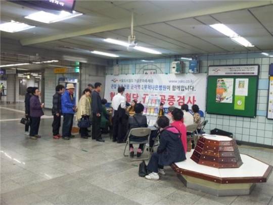 5678 서울도시철도 가을문화축제에서 연세무척나은병원은 지하철 이용시민들을 대상으로 무료 혈압, 혈당, 골다공증검사등 무료건강검진을 실시하고 있다. 이번 행사는 지하철 가을 문화 축제기간동안 10월 18일, 25일 목요일 2회에 걸쳐 2시~6시까지 군자역내에서 실시했다.