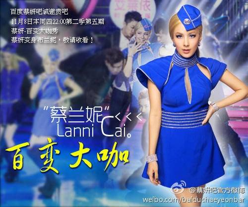 가수 채연은 11월 13일 자신의 트위터에 "百变大咖秀라는 중국방송에서 브리트니로변신.. 채리트니 연피어스 다음번엔..누구게요?"라는 멘션과 함께 사진 한 장을 게재했다.