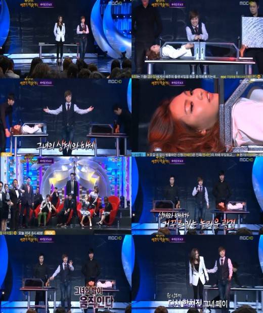 페이는 마술 시범 대상으로 선발, 특별 제작된 테이블에 누웠다. 최현우는 페이의 허리 부위에 마술 칼을 관통시켰다. 출연자들과 객석 눈앞에서 페이의 상체와 하체가 분리됐다.