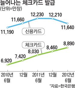 내년부터는 체크카드를 많이 쓰면 개인신용등급도 올라갈 전망이다. 금융당국이 체크카드 사용 실적을 개인신용평가에 가점 요인으로 반영하도록 제도 개선에 나섰기 때문이다.