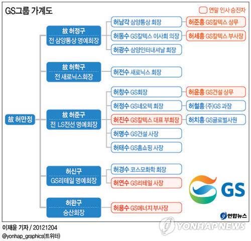 (서울=연합뉴스) 이재윤 기자 = GS그룹은 4일 임원인사 발표를 통해 GS칼텍스 영업본부장을 맡아 온 허 부회장을 신임 CEO로 선임하는 한편 이전까지 CEO를 맡아온 허동수 회장은 내년 1월1일부로 GS칼텍스와 GS에너지의 이사회 의장을 맡게 된다고 밝혔다.
