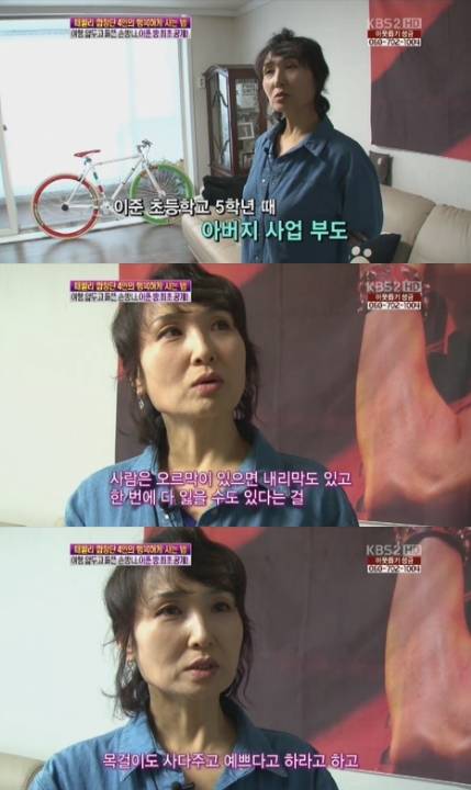 이날 손방나는 아들 이준이 '근검절약 아이돌'로 유명한 것에 대해 "5학년 때 아버지가 부도를 맞았다. 13년 동안 정말 힘들게 살았다"며 "그게 이준에게 교훈이 된 것 같다"고 밝혔다.