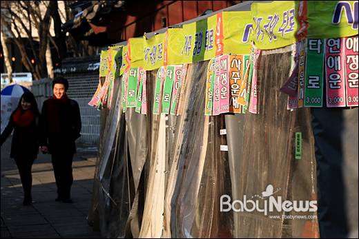 베이비뉴스 이기태 기자 = '2013년 애정운은 어떨까, 결혼을 할 수 있을까?' 지난 12일 오후 서울 종로구 종로2가 야외 사주카페 길목을 따라 한 연인이 걸어가고 있다. likitae@ibabynews.com ⓒ베이비뉴스 |