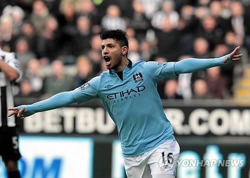 epa03509557 Manchester City's Sergio Aguero celebrates after scoring the opening goal against Newcastle United during the English Premier League soccer match between Newcastle United and Manchester City at St James' Park in Newcastle, Britain, 15 December 2012. EPA/LINDSEY PARNABY DataCo terms and conditions apply http//www.epa.eu/downloads/DataCo-TCs.pdf ☞ 美코네티컷 초교서 총기난사로 27명 사망(종합4보)☞ tvN '슈퍼챌린저코리아' 우승에 박윤서씨☞ 해경, 울산항 침몰선 기름유출 긴급 방제☞ 복싱 김주희, 8대 기구 통합 챔피언 등극(종합)☞ < "총기난사범, 방탄조끼 입고 아이들에게 총격" >