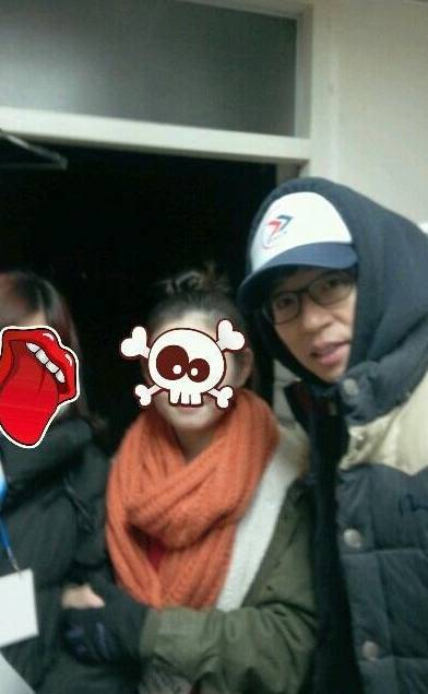 사진 속 유재석은 캡모자에 패딩점퍼를 입은 채 두 명의 여성과 나란히 카메라를 응시하고 있다.