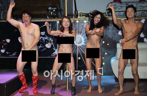[아시아경제 송재원 기자] 20일 오후 서울 대학로 비너스홀에서 연극 '교수와 여제자3' 팀이 알몸 말춤 퍼포먼스를 선보였다.