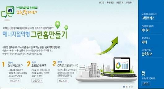 ↑녹색건축 관련 인터넷 포털 서비스 '그린투게더' 홈페이지 화면. |