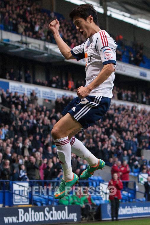 [볼턴, 영국(현지) - 5/1/2013] 이청용이 2013년 한국 유럽파 첫 골을 쏘아올렸다. 리복 스타디움에서 열린 FA컵 64강전 볼튼과 선덜랜드의 경기가 열렸다. 전반12분 이청용, 후반3분 소델의 득점으로 볼튼이 2:0으로 앞서나갔다. 후반15분,30분 선덜랜드 위컴과 가드너가 두골을 만회해 경기는 2:2무승부로 끝났다. 이청용은 득점을 올리며 최상의 활약을 보였다.사진은 12분 이청용 선제골 세레머니.