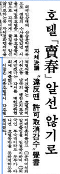 1974년 1월 11일자 동아일보 '호텔 매춘 알선 않기로'라는 제하의 기사. |