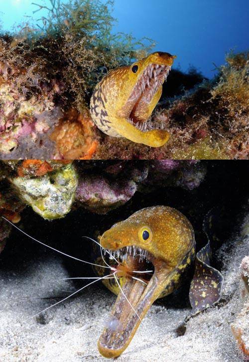 스페인 로스 크리스티아노스 인근 바닷 속에서 다이버들에게 포착된 이 곰치의 정식이름은 '팽투스 모레이'(fangtooth moray)로 뱀장어목 곰치과에 속하는 물고기다.