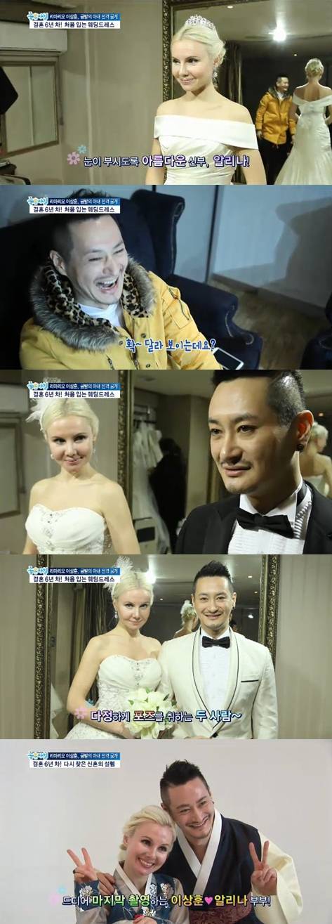 이날 이상훈은 "6년 동안 함께 해왔기 때문에 아내가 웨딩드레스를 입은 모습을 봐도 그렇게까지 설렐 것 같지는 않다"라고 담담하게 말했으나 정작 아내 알리나 씨가 웨딩드레스를 입은 모습을 보자 함박웃음을 감추지 못했다.