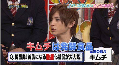 얌다 료스케는 지난달 27일 방송 된 니혼TV 버라이어티 프로그램 '스쿨혁명'에서 "김치가 건강에 좋듯이 피부에도 좋을 것이라 생각했다"고 말 해 눈길을 끌었다.