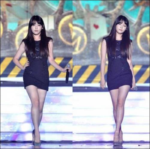 사진 속 아이유는 검은색 미니 원피스를 입고 탄탄한 몸매를 과시하고 있다. 특히 깜찍한 외모와는 달리 완벽하게 뻗은 각선미가 인상적이다.