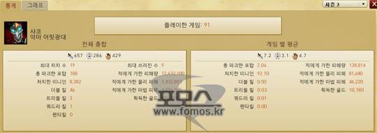 달인이 뽑은 최고의 샤코 플레이어 '인섹' 최인석.포 : 시즌2에서는 샤코를 플레이 하지 않았는데 시즌3에 들어서 사용하게 된 계기가 있을까요.샤 : 시즌2에서는 샤코를 4판정도 했네요. 3승1패 ㅋㅋ. 이 시기에는 아까도 말씀 드렸다시피 이것저것 손대는 과정이었던 것 같네요. 그러면서 시즌3 프리시즌이 왔고, 레이팅이 초기화 되버렸어요. 근데 시즌2 플래티넘이라 제 점수대 배치에서는 다이아분들도 많았고 대혼란이 왔죠. 평소에 하던 정글로는 레이팅이 오르질 않더라고요 ㅋㅋ. 그래서 확실한 챔프가 필요했고 그 과정에서 샤코를 만났죠.