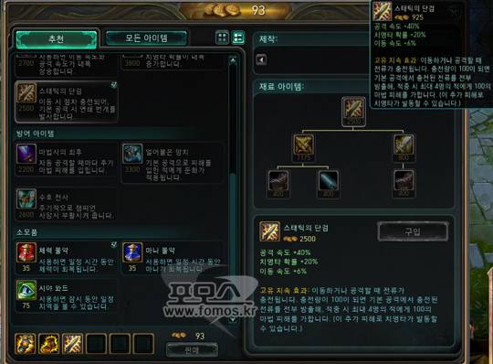 포 : 그렇다면 방금 말한 대로 아이템에 대한 혼란은 어떻게 해결할 수 있을까요?샤 : 샤코 템트리가 조금 혼란스러울 수 있어요. 많은 종류의 샤코들이 있기 때문이죠. 예를 들어 탱샤코, 딜샤코, 백도어용 샤코, 한타 지향형 샤코로 분류할 수 있겠네요. 그렇지만 어느 샤코를 가도 선 '리글의 랜턴'과 '기동력의 장화'는 필수 아이템이라고 말씀 드리고 싶네요. 조금 더 구체적으로 표현하면 탱샤코와 한타 지향형 샤코가 비슷하고, 딜샤코와 백도어 샤코가 조금은 비슷하다고 볼 수 있는데요. 탱샤코와 한타 지향형 샤코는 초반에 빠른 방어템이나 체력템을 가요. '워모그의 갑옷'이나 '얼어붙은 망치'를 먼저 가면서 '룬방벽'이나 '군단의 방패'를 선택해 팀 파이트에 기여하는 거죠.