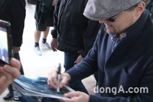 디캐프리오가 공항을 빠져나가면서 팬들과 일부 취재진의 눈은 그에게 사인을 받은 팬을 향했다. 쉽게 오지 않은 기회였기 때문에 사인을 받은 팬의 종이에 관심이 집중됐다.