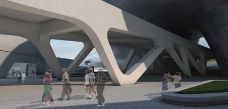 처마 밑에 놓이는 길이 85m의 노출 콘크리트 다리(bridge ·사진)도 주목거리. 지하철 2·4·5호선역과 디자인뮤지엄 입구를 잇는 이 육중한 다리는 마치 한 점의 오브제(작품)처럼 설치될 예정이다. '비즈니스센터' 1·2층 서고(書庫)에 놓일 계단 역시 '거대한 설치작품'을 목표로 공사 중이다. [5 평가] "흉물 될 것" vs "명소 될 것"