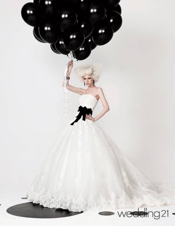 뉴욕의 시크함이 묻어나는 웨딩드레스 위로 감각적인 블랙 컬러를 채색한 N.Y 브라이덜 필리파의 S/S 웨딩 룩.
