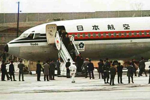 1970년 3월 적군파는 요도호를 공중 납치해 평양으로 가려다 한국 김포공항에 비상 착륙했다(위). |