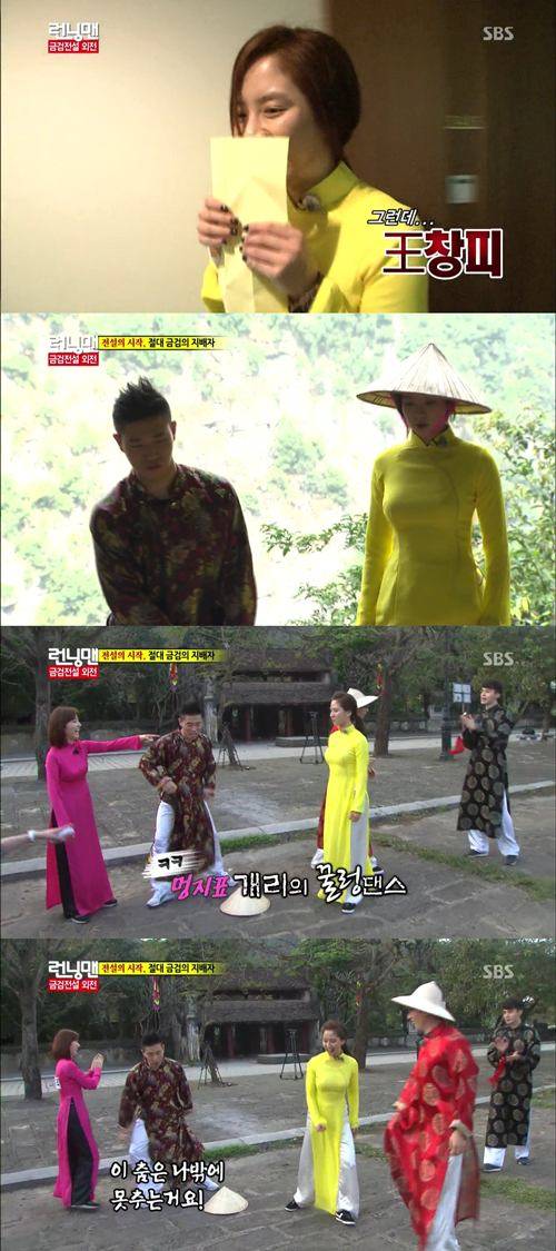 3월10일 방송된 SBS '일요일이 좋다-런닝맨'에서 멤버들은 신비로운 능력을 지닌 금검으로 상대방 이름표를 제거하는 미션을 받아 베트남 전통의상 아오자이를 입고 고군분투했다.