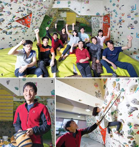 ↑ [월간산]1 10대부터 60대까지 다양한 연령대가 찾는 크럭스존. 2 크럭스존을 운영하는 김팔봉 센터장. 3 김팔봉 센터장은 긴 루트를 반복해서 오르라고 말한다. |