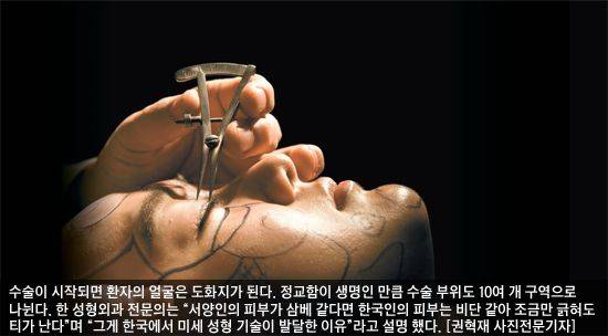 #1. "처음엔 무섭죠. 칼을 든 의사가 보이고, 코의 골막을 갈아내는 소리가 사각사각 들리면 나도 모르게 온몸에 소름이 돋아요." 최근 눈과 코 수술을 받은 대학생 최모(20)씨의 말이다. 그는 "쌍꺼풀과 코 수술은 부분 마취를 하기 때문에 수술하는 게 피부로 느껴졌다"며 "눈 위로 바늘이 왔다갔다 하고 눈가의 지방을 빼는 과정에서 고기 타는 냄새가 날 땐 눈물이 절로 흐르더라"고 수술 당시를 회상했다. 최씨에게 용기를 준 건 먼저 수술한 친구들이었다. "예뻐진 친구들을 보면 망설일 이유가 없다는 생각이 절로 들거든요." 성형 이후 최씨와 친구들은 서로의 고교 시절 사진을 페이스북에서 모두 지우기로 약속했다.