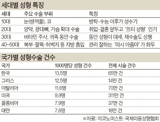 성형수술은 세대를 가리지 않는다. 예뻐지고 싶은 욕망은 나이를 불문한다. 하지만 선호하는 수술의 종류와 부위는 나이별로 다르다. 어린 10대들을 사로잡는 것은 눈과 코 성형이다. 쌍꺼풀이 있는 큰 눈과 오똑한 코, 두 곳에 집착한다고 해도 과언이 아니다. 부모가 자녀의 학업 스케줄을 관리하듯 딸아이의 성형 견적을 고민하는 게 당연한 일처럼 됐다. 특히 방학과 수능 이후는 엄마의 팔짱을 낀 10대들이 성형외과를 점령하는 극성수기다.
