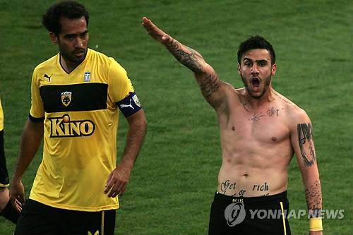 그리스 축구선수, 골 넣고 '나치식 인사' 논란(종합)