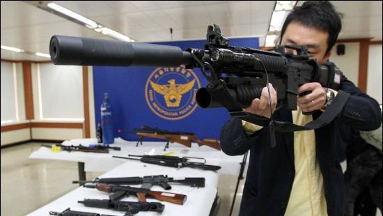 지난 14일 서울 중구의 한 전통시장. "위력이 센 BB탄총을 구할 수 있냐"고 물어 찾아간 가게 주인은 구석의 서랍에서 조심스럽게 권총 한 자루를 꺼냈다. 생뚱맞게도 완구점이 아닌 전자제품 가게였다. 주인은 "개조한 BB탄총인데 37만원에 가져가면 된다. 이 가격이면 정말 싼 것"이라고 흥정을 걸었다.