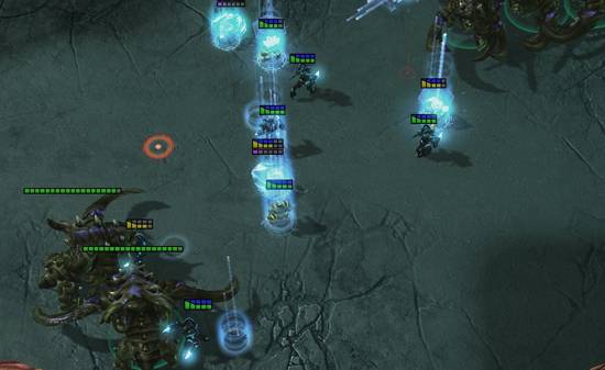 사원을 점령하기 시작하면 프로토스 병력이 소환된다. 미리 공격하는 것도 팁일단 빠르게 오른쪽 언덕 아래 멀티 지역을 확보해 본진 부화장을 3개까지 늘린 뒤 히드라리스크와 울트라리스크의 구성비를 적절히 분배하며 세 번째 사원까지 닫자.
