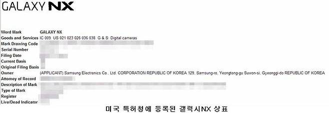 미국의 IT매체 우버기즈모에 따르면 삼성전자는지난 19일미국 특허청(USPTO)에 'Galaxy NX(갤럭시NX)'라는 상표를 등록했다. 'NX'는 삼성전자의 미러리스(Mirrorless)카메라 브랜드다. 즉, 삼성전자가 스마트폰과 미러리스 카메라를 하나로 합친 제품을 준비 중이란 의미다.
