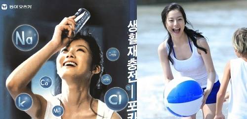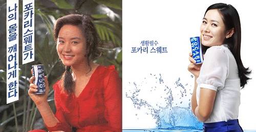 포카리스웨트 광고가 맞나 싶은 의외의 스타일을 보여준 스타도 있다. 이미 김혜수가 가진 강렬한 섹시함을 알아봤던 것일까? 김혜수는 이례적으로 광고 포스터에서 레드 원피스를 입은 모델이다. 모델의 강렬함과 제품의 이미지가 극명하게 대조되는 효과를 노린 듯. 2001년도에 이어 2007년에 또 한 번 모델로 발탁된 손예진도 2001년도에는 시그니처 아이템인 화이트 원피스를 입었지만, 2007년도에는 포카리스웨트 모델 처음으로 세련된 오피스 룩만 여러벌 선보였다.